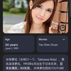 她就是拥有俄罗斯和日本血统的【泷泽萝拉】(水咲萝拉),苗条且修长的 172 公分身高,和白皙的肌肤与D咖 点击:她的维基百科 目前我们拿到最低的价格是 “60分钟;55万日币”